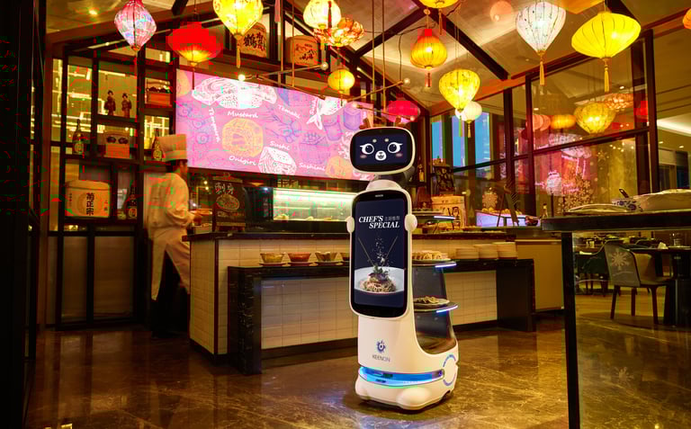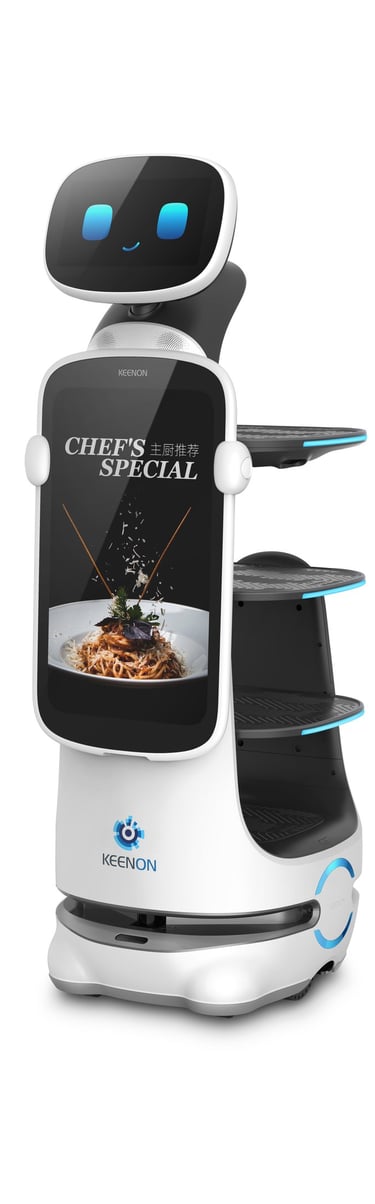 The DINERBOT T10 is engineered for tight, high-traffic environments, moving smoothly through passages as narrow as 58.5 cm while carrying up to 40 kg. With 360-degree perception powered by five stereo-vision sensors and four RGB cameras, it maintains clear awareness in busy spaces. Advanced AI and multi-robot coordination optimize routing and workflow, supporting fast, efficient service at peak hours.