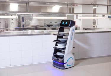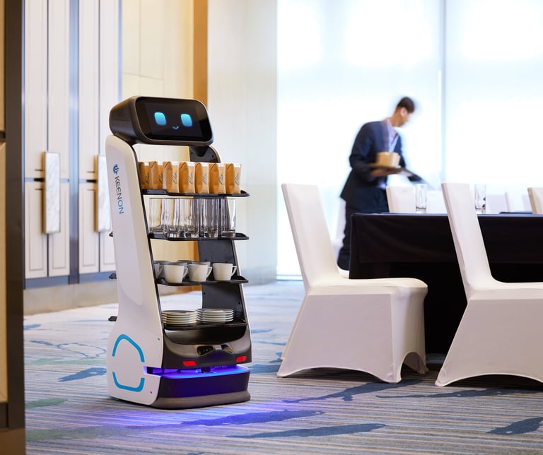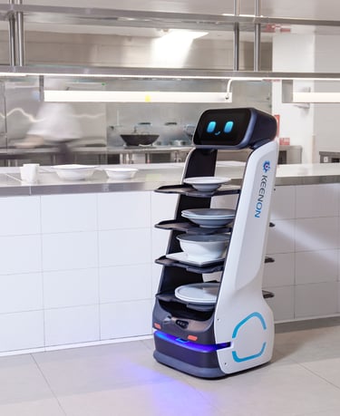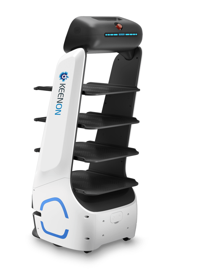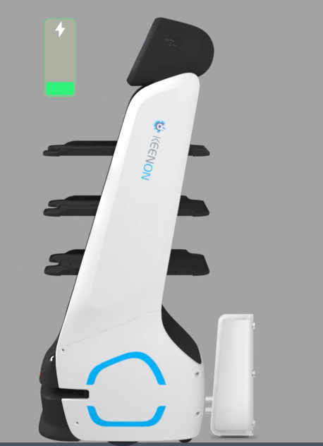 The Keenon DINERBOT T9 is a versatile delivery robot designed for restaurants, cafés, hotels, and care facilities. With four trays supporting up to 40 kg, it efficiently serves multiple tables or groups at once.