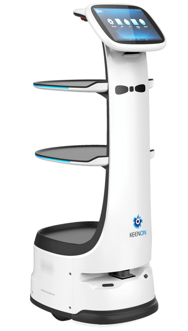 The Keenon DINERBOT T9 Pro is a high-capacity service robot designed primarily for busy restaurants and Cafés. With four trays carrying up to 40 kg, smart tray sensors that detect pickup, and dual displays for interactive engagement, it delivers food or items efficiently and with a friendly touch.