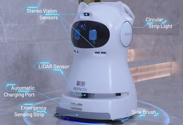 Smart and Agile with Safety Protection Featuring 3 Depth Stereo Vision and intelligent obstacle avoidance, the robot can maneuver agilely through crowds while ensuring operational safety.