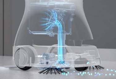 3-in-1 Dry Cleaning The robot can simultaneously perform sweeping, vacuuming, dust mopping , and other cleaning tasks, equipped with a powerful suction motor to clean up common garbage.
