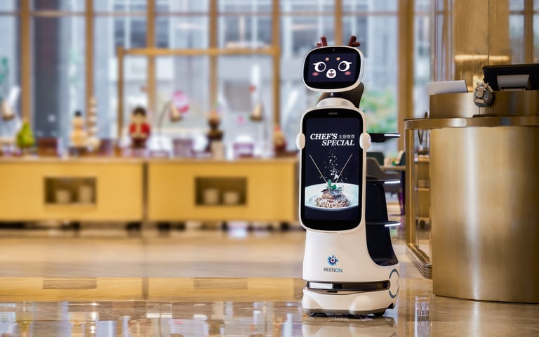 The DINERBOT T8 is a lightweight, agile service delivery robot for narrow spaces. With three trays carrying up to 40 kg, it navigates smoothly through tight aisles.